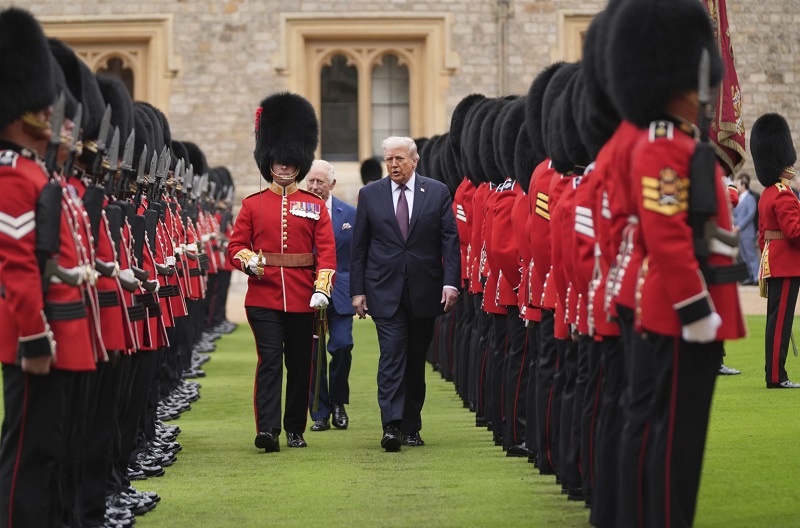 ABD Başkanı Donald Trump ve First Lady Melania, ABD liderinin Başbakan Keir Starmer ile görüşmesinden önce Windsor Kalesi’nde Kral 3. Charles tarafından kraliyet ihtişamıyla ağırlanacağı 2 günlük tarihi bir devlet ziyareti için salı günü geç saatlerde İngiltere’ye vardı.